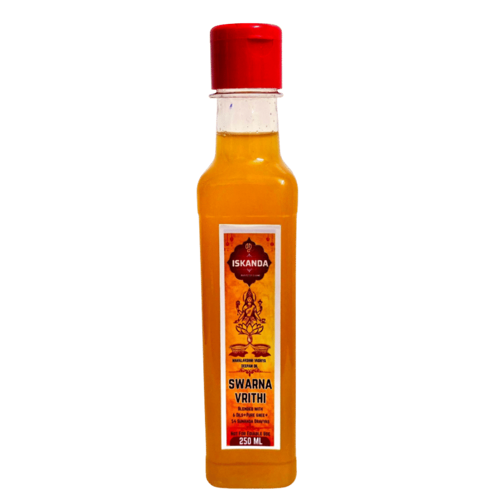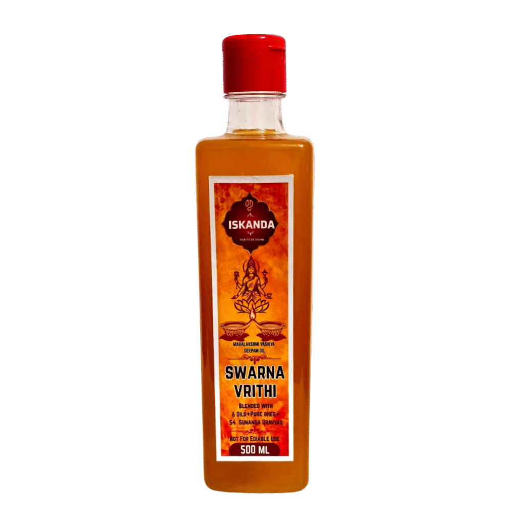 “Ever since I started using ISKANDA SWARNA VRITHI Deepam Oil, the energy in my home feels more peaceful and positive—it’s truly divine and 100% natural.”