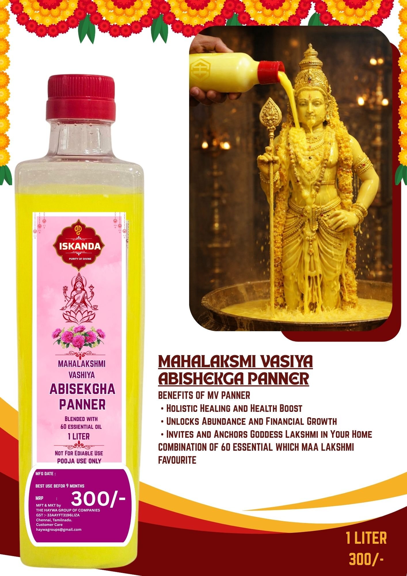 ✨MAHALAKSHMI VASHIYA ABISHEGHA PANNER– Symbol of Auspiciousness✨